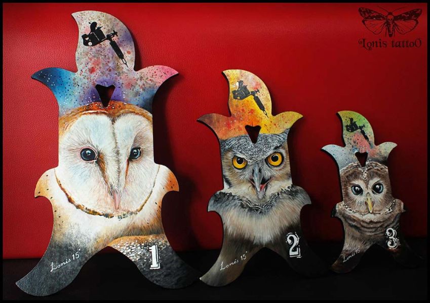 CYPRUS ITC AWARDS Hand painted awards for the Best Colour Category made by Lonis for the Cyprus International Tattoo Convention 2015. Prev Next